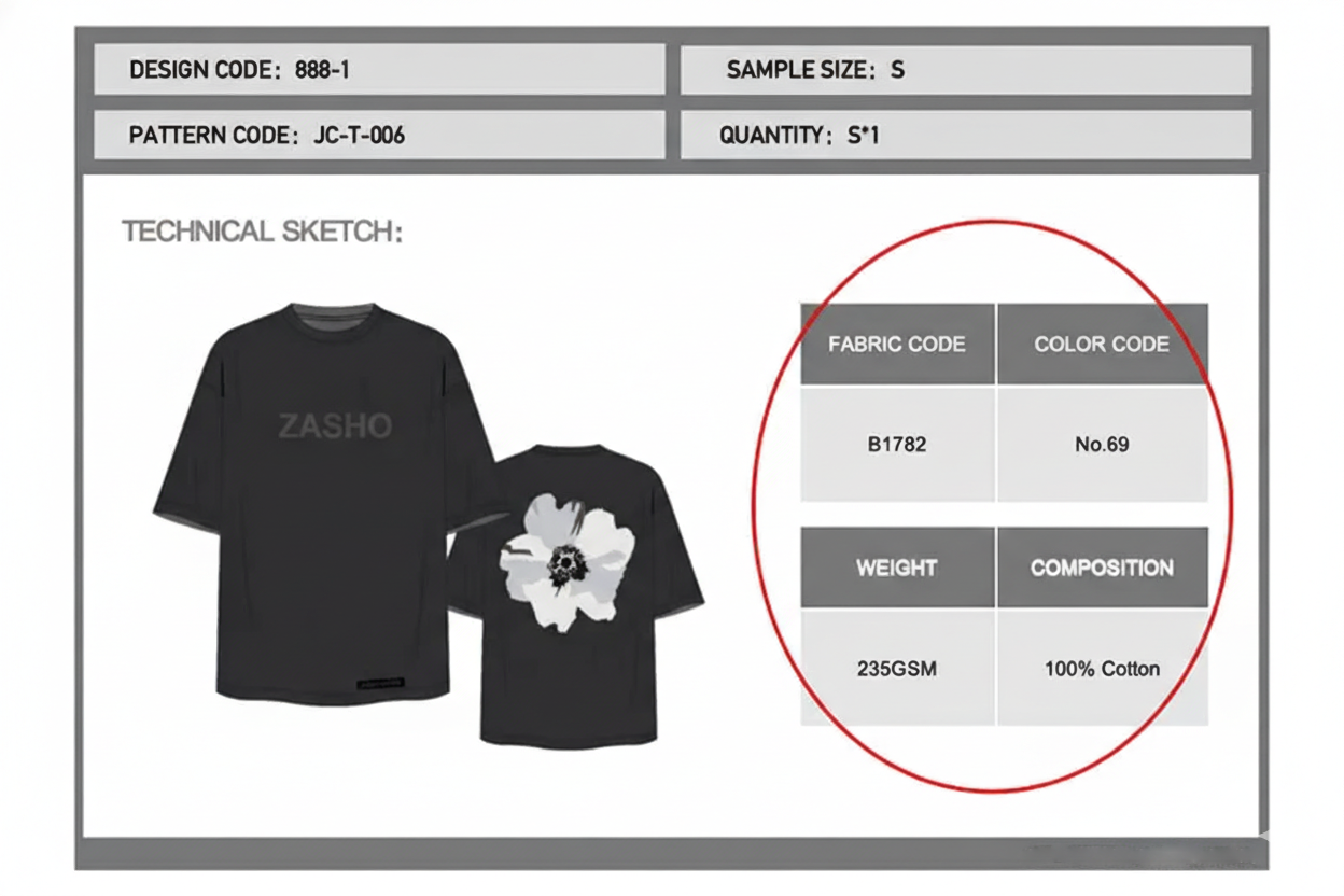 No. At Zasho, your tech pack can be a document, image, or any other format. As long as it includes basic information like design, sizing, fabric, and printing techniques, you can even just send a sheet. Any additional details can be discussed during the sample stage.
