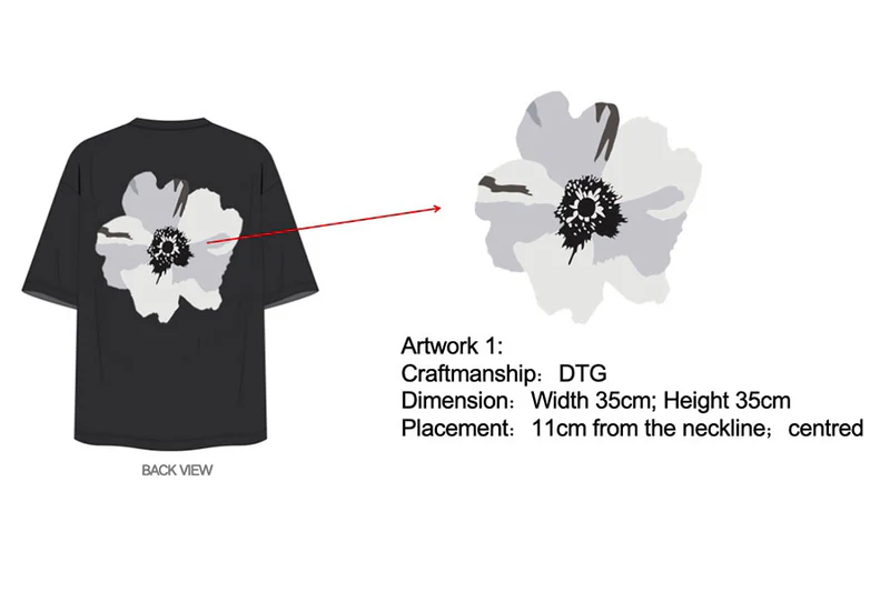 Another key detail to include in your tech pack is the method you’d like for applying your artwork to the garment.